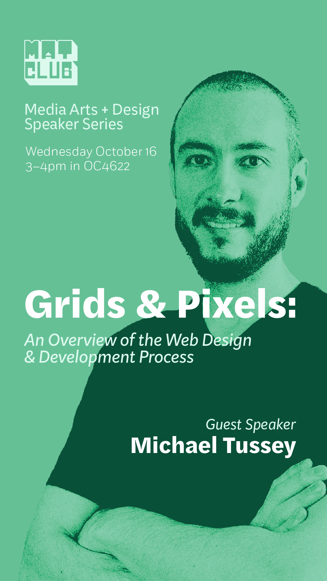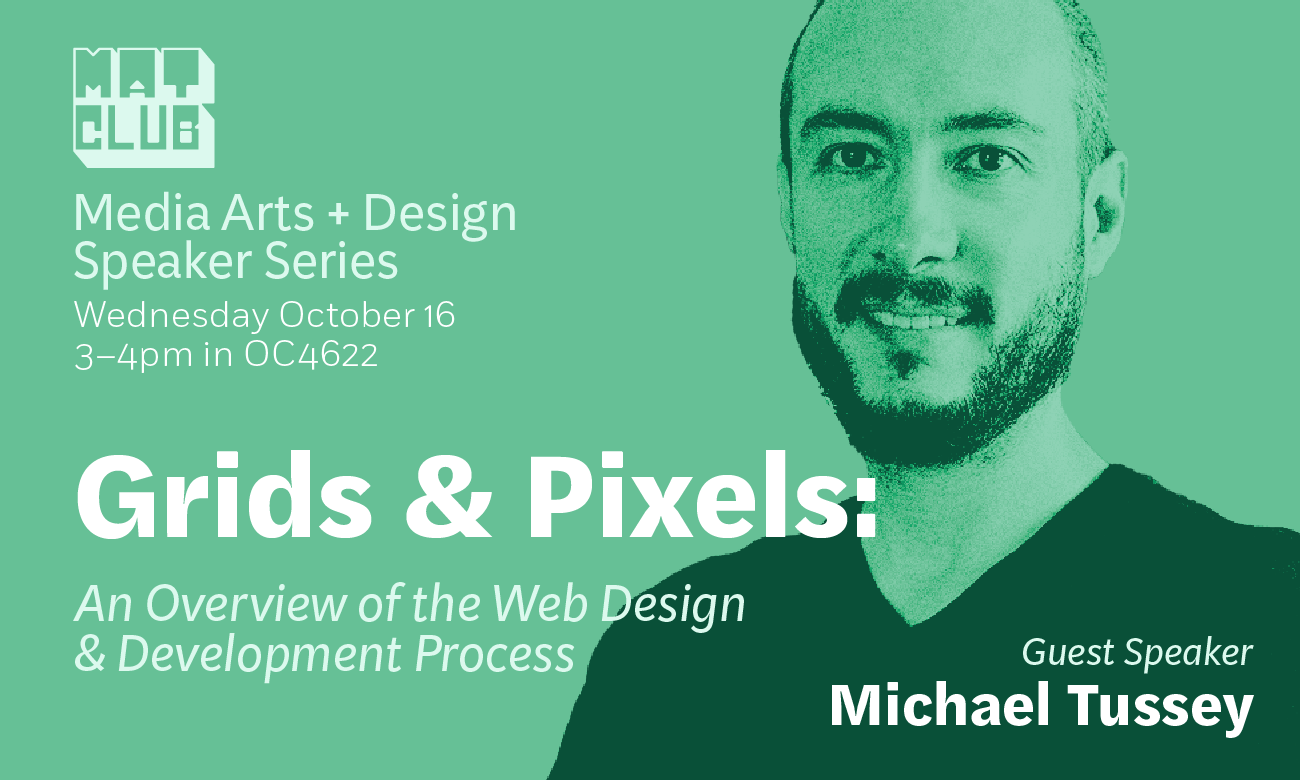 We’re thrilled to announce the next event in our Media Arts + Design Speaker Series, Grids & Pixels: An Overview of the Web Design & Development Process, with guest speaker Michael Tussey!
